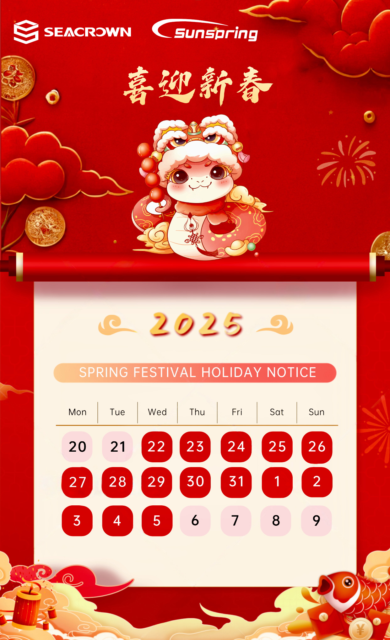 The Seacrown and Sunspring teams will be on Spring Festival holiday from January 22nd to February 5th 2025.