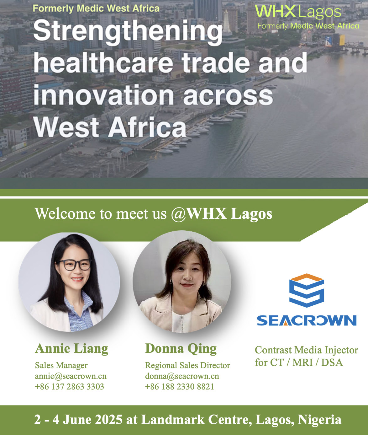 我們誠摯地邀請您于2025年6月2日至4日蒞臨拉各斯Landmark Centre,屆時我們將探討CT、MRI和DSA造影劑注射方面的合作。