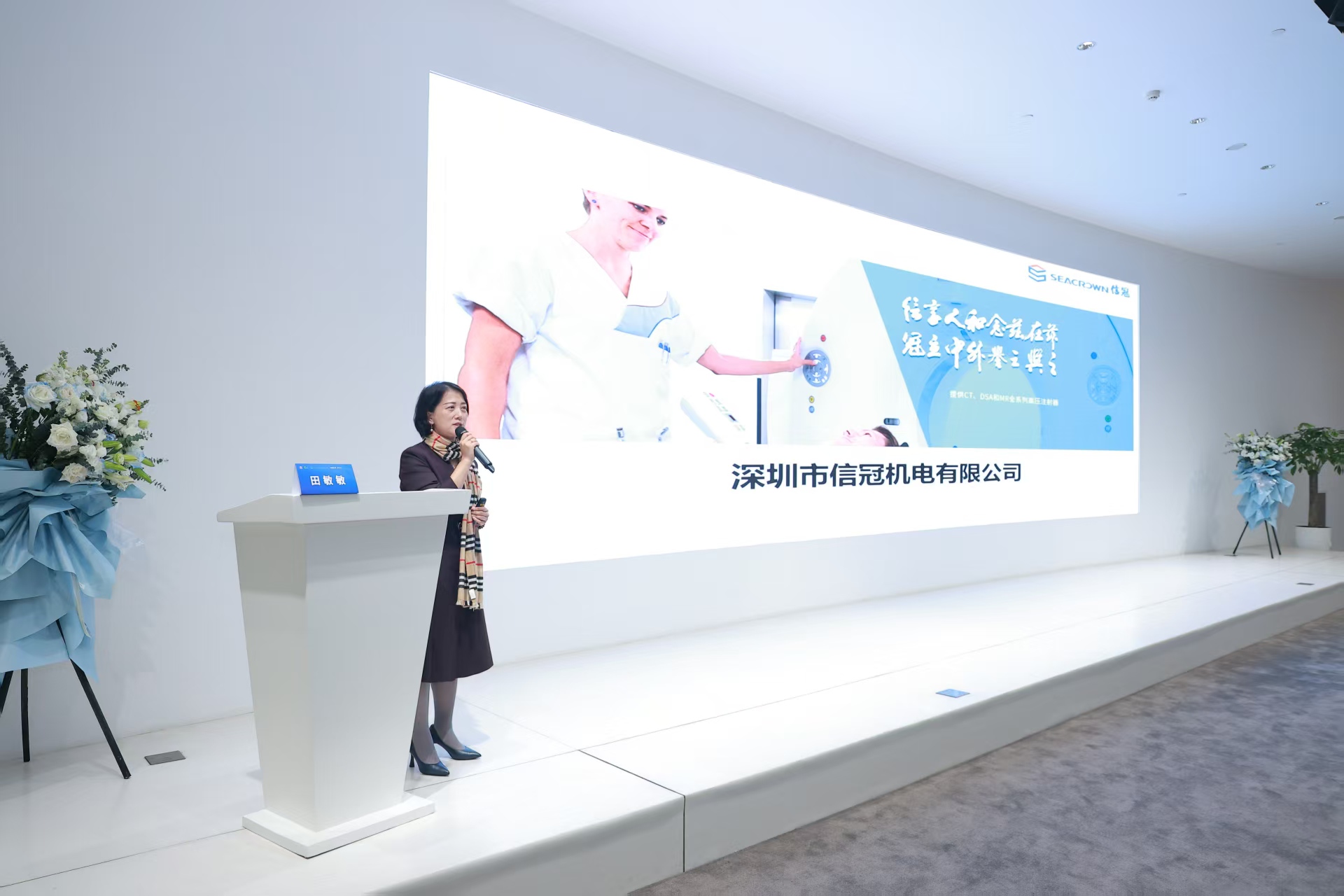 會上,信冠醫療代表登臺宣講,全面介紹了公司二十余年深耕影像造影注射領域的發展歷程、硬核資質與全系列核心產品,展現了信冠作為國產高壓注射器領軍者的專業實力與全球布局。